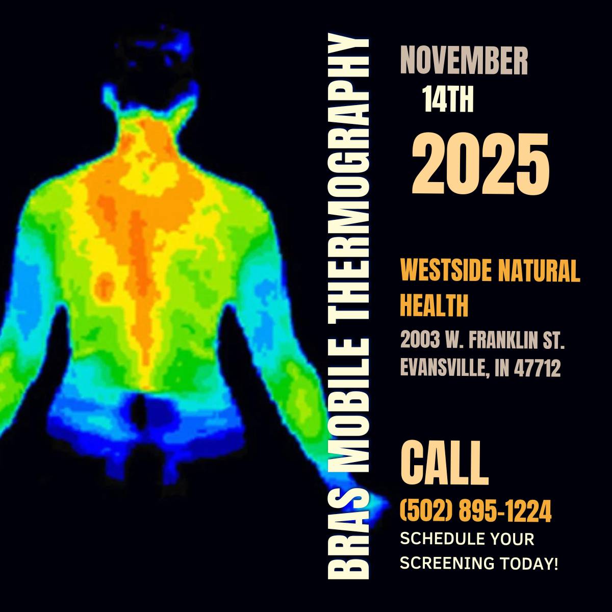 Our next mobile Thermography screening will be held on November 14th, 2025. As always, please contact BRAS Thermography Louisville at (502) 895-1224 to schedule your imaging appointment.